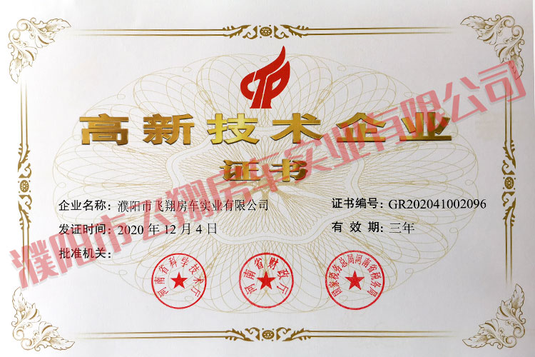 高新技术企业证书