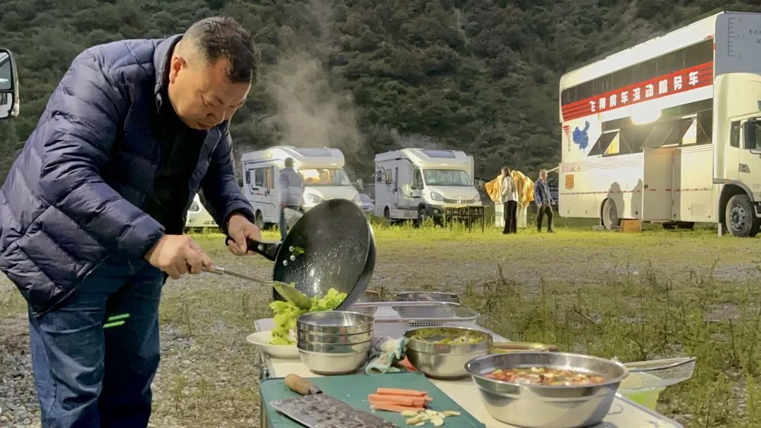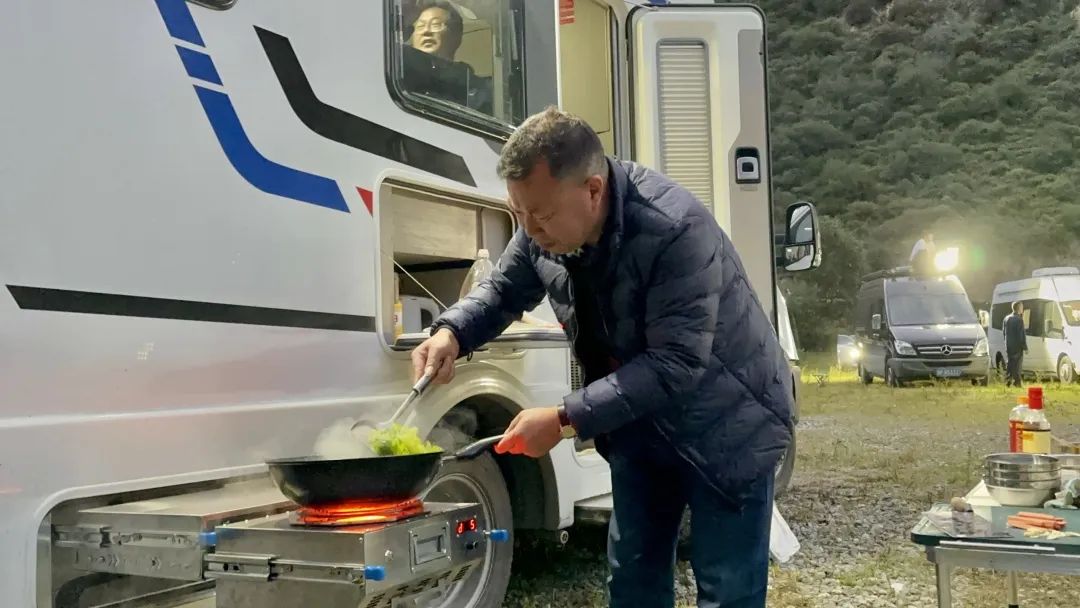 夜晚找个营地,和车队驻扎在山脚下,与家人坐在一起,用柴油炉亲手烹制一桌拿手好菜,回忆一路上遇到的美景,幸福感满满,享受美食的同时,也缓解着长途跋涉的疲惫。