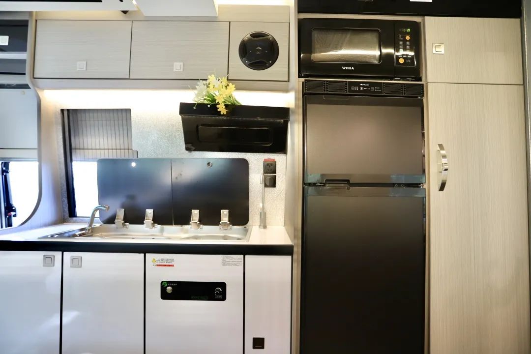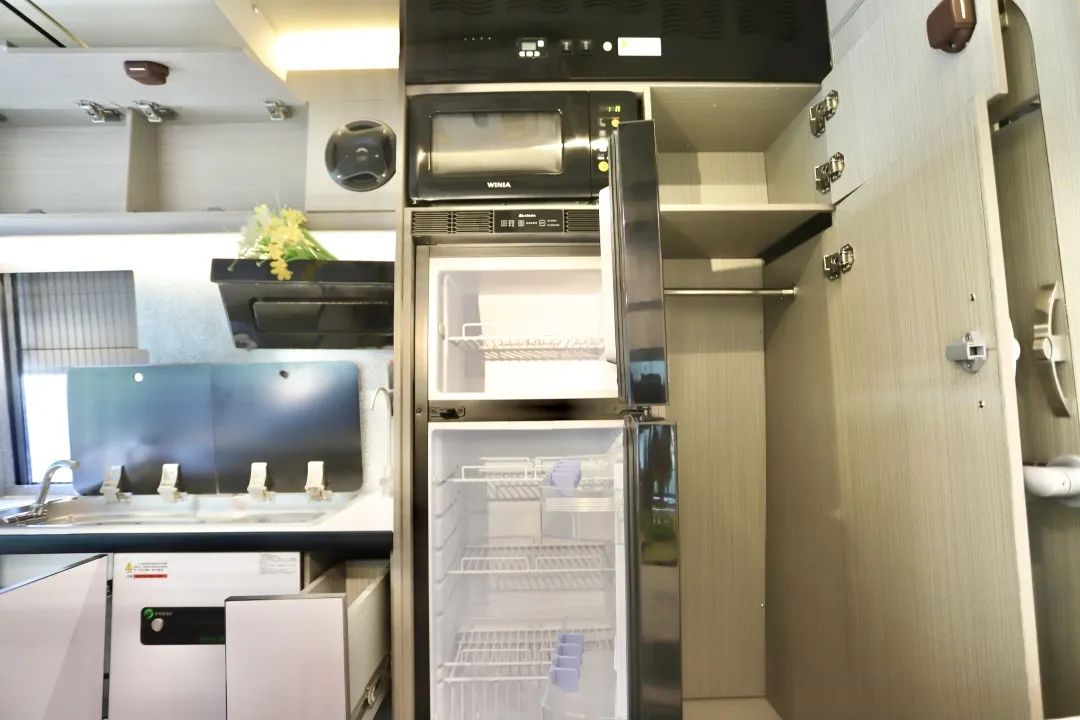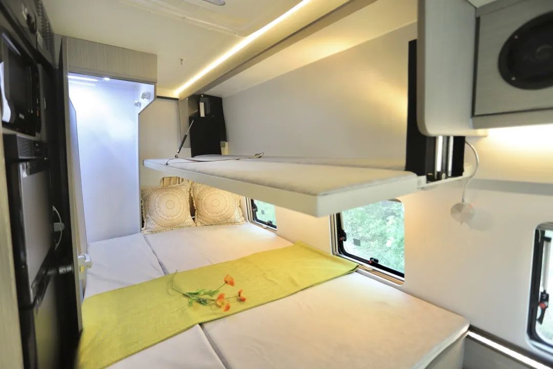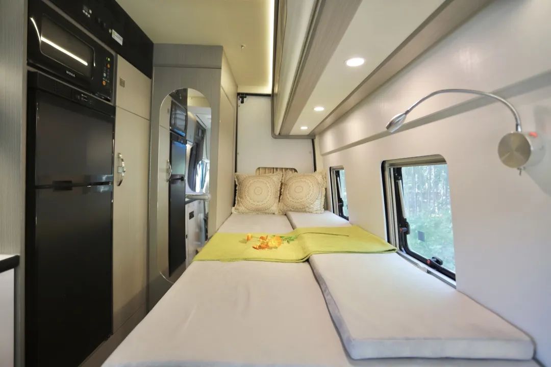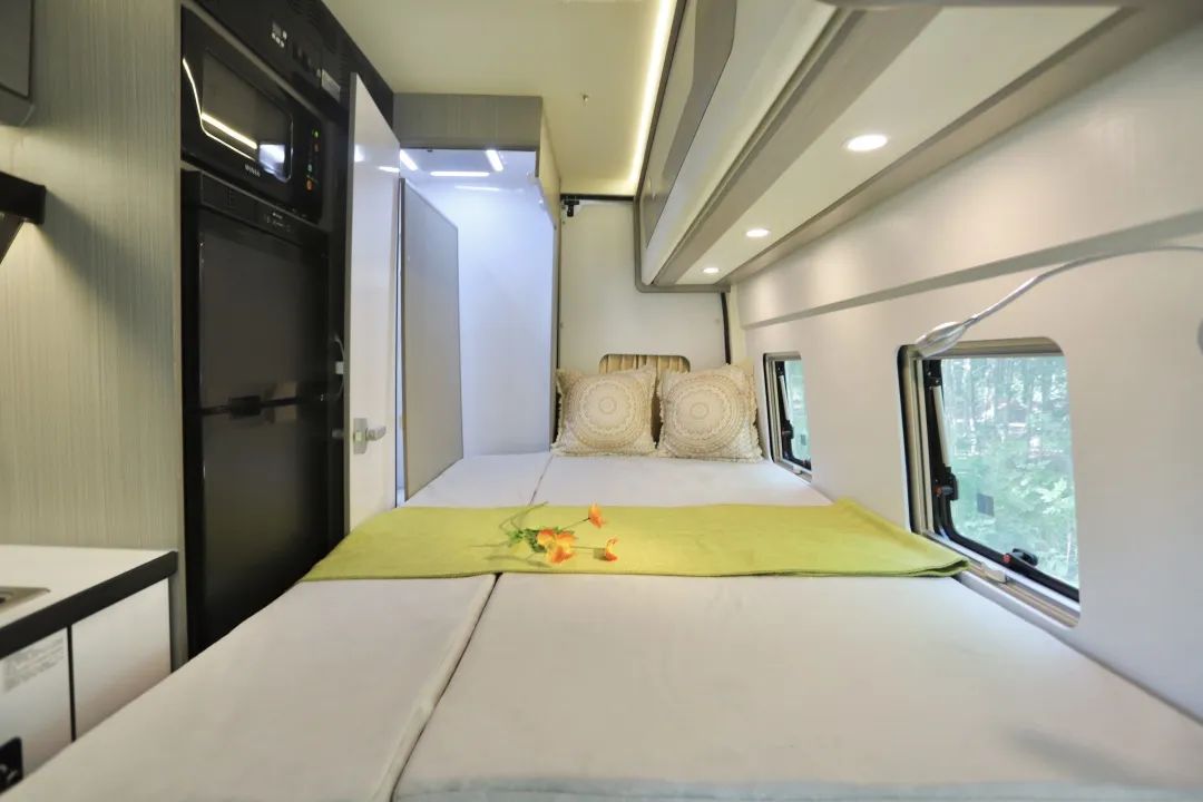 都2023年了,怎么还有人天天吐槽舒野一号上面有三张床呢?三张床不好吗?假期刚好可以拉着自己的子女、小孩一块出去玩儿! 这款基于福特新世代V348底盘打造的舒野一号,不仅有三张床,更是有两厨一卫和一个温馨的会客厅! 平时孩子没有假期,只能和爱人一起出去旅行,就睡这张固定床,长2m宽0.9m,扩展完成宽度变为1m2,两人使用正合适,床下还有大储物空间,行李重物都可以放里面。 七天小长假即将开启,小朋友们一放假就想出去玩,刚好坐这辆车,上面的铝合金吊柜变床睡一个,铝合金吊柜变床很简单,电控按钮按下,轻松翻折就搞定了一张0.9*1.9m的单人床。 另一张床则隐藏在天花板九宫格灯池上方,使用时按下按钮就得到了一张承重600斤,两个壮汉睡上面都完全没问题的一键升降式吊床! 车内的卫生间配置可谓应有尽有,赛特福德的盒式马桶可以旋转,可以侧滑;折叠式洗手盆具有超大容量,收纳起来之后紧贴墙壁,丝毫不占据任何空间,而且淋浴花洒,防水五孔插座,双向排气扇以及独立照明灯等都有配备,里面还有大大小小储物柜和储物格,可以放置大量洗漱用品。 厨房与卫生间之间有可以挂放衣物的大衣柜、可正负压快速换气的新风系统、上冷冻下冷藏的双开门大冰箱以及可以解决日常早餐问题的韩国大宇微波炉,这些配置完全可以满足您的日常使用需求。 两个厨房就在一个区域,只不过一个在户外,一个在车内。 户外厨房由内外贯通的储物空间、淋浴花洒、五孔插座、便携式外置柴油炉以及可抽拉不锈钢桌板构成。 内置厨房配置更丰富,微晶面板设计的柴油炉、容量可观的洗菜池以及冷热水可调节的可旋转水龙头,旁边则是自带反渗透功能的净水设备以及上方的下沉式抽油烟机。 周边还有大大小小的储物柜可放置碗筷厨具调味品,如此丰富的布局完全可以让你发挥最精湛的厨艺。 虽是B型房车,但会客厅却不显拥挤。 全是因为飞翔的国家发明专利——一键升降折叠桌在默默助力,需要时就是70*53cm的单人桌以及120*53cm的大餐桌,等到不需要的时候,又能完美融入到墙壁之中,充分展现了空间利用率的无限可能。 后排的汽车独立座椅也可以前后左右移动,配备有三点一式安全带,坐感舒适,旅行体验也会更好。路上无聊也可以选择打开32寸的液晶网络电视,看看自己心爱的栏目剧集。 整车长5m99,宽2m1,高2m8,通过性良好,蓝牌C照即可驾驶。 车身拉花以蓝灰色为主,而蓝色在白色车身衬托下更吸睛夺目,让人一看就心情愉悦。 整车为您标配到3000W逆变器,800Ah锂电池,200W太阳能板以及132L净水箱和40L灰水箱,一家人出行也可以使用好几天。 所以这款四座五卧两室一厅一卫的舒野一号,有辜负您对B型车的期待吗? 11.18-20号,广州番禺区飞翔房车北约露营地,有现车哦~部分现车最低降4万,最高将8万!限时限量!先到先得!