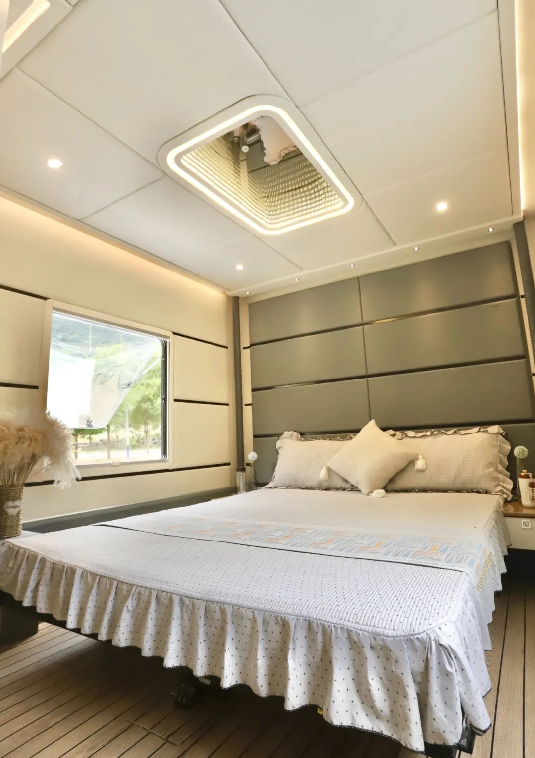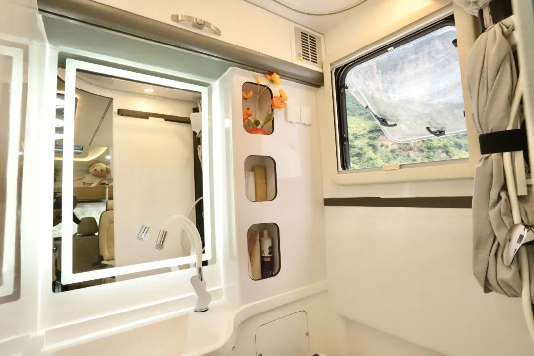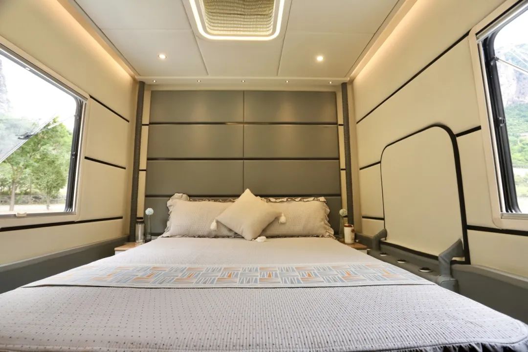 两个厨房、两张床、两个卫生间、整车核载6人