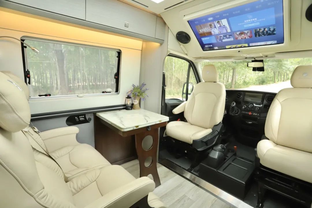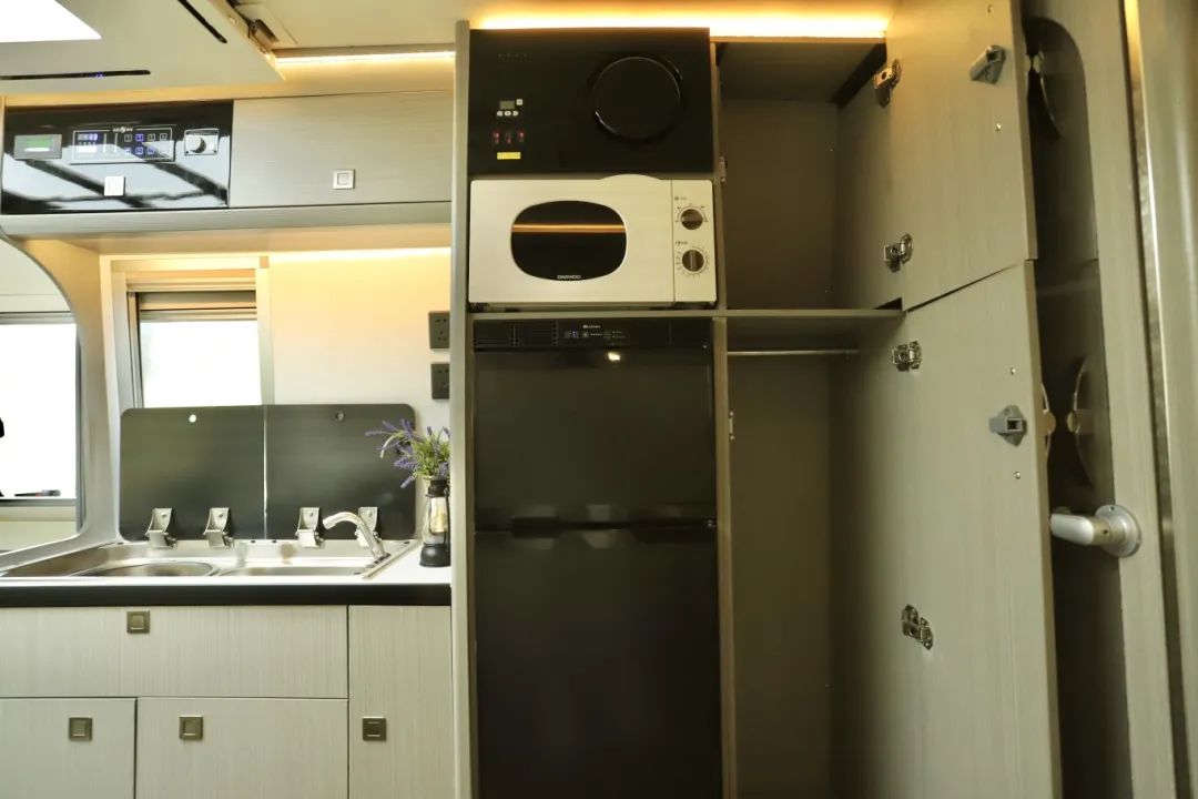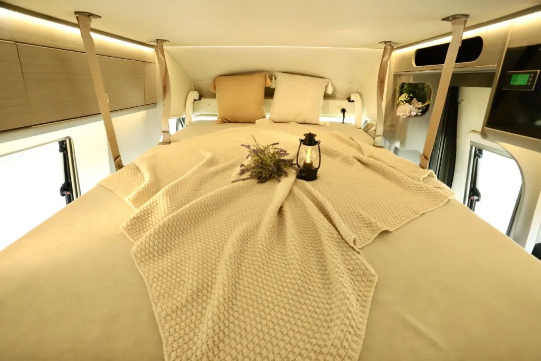 现车、现车、高配现车!超全配置,超大容量的依维柯铁C来了! B型车的外形内部有C型车的使用面积!关键在价格上绝对会给您惊喜!先来看看上装配置如何? 基于依维柯欧胜底盘打造而成,整车尺寸为5970×2340×2950mm,车长不足6米,蓝牌C照即可驾驶。 整车外观采白黑搭配,车身没有任何拉花设计,简约大方,出行时也很低调。 动力方面3.0T柴油发动机匹配8AT采埃孚变速箱,最大功率可达125KW,峰值扭矩可达400N.m,后驱后双胎的设计提高了整车的动力和稳定性,动力十足,轻松应对各种复杂路况! 本车采用中门上车,左侧为本车的外置厨房区域,为您安装的是户外两截式抽拉柴油炉,直取油箱内的柴油作为燃料,搭配上方内外贯通式的储物空间,内外拿取方便。 车身尾部安装有自行车架和后爬梯,方便您定期去往车顶清理太阳能板和空调、换气扇的外机。 外接市电口和重力加水口分别在车身左侧,本车为您配备190L净水箱、70L灰水箱;电是800Ah锂电池、600W太阳能板,3000W逆变器,另外本车还配备有泓晟达汽油发电机,让您用电无忧! 上来车,中门右手边便是内置厨房区域,为您配备电磁炉、洗菜池、冷热水可调节水龙头、反渗透设计净水直饮系统、五孔插座,设施齐全,车内电磁炉做顿简餐,车外柴油炉做顿大餐,房车烹饪就是这么简简单单! 除此之外,厨房区域还准备了充足的储物空间放置厨房用具,上方一个容量可观的的木制吊柜,放日常所需的厨具碗具很是够用。桌台下侧有可抽拉的储物抽屉,方便您放些锅碗瓢盆。 厨房旁边微波炉、96L双开门冰箱,上方冷冻,下方冷藏,设施非常齐全。所以即便是天气或条件不允许时,您可以在车内做饭享受美食。 至于衣物和行李的存放,不仅有固定床下方内外贯通式的储物空间,冰箱旁边的立式衣柜可以挂一些不易叠放的衣物或者日常换洗的衣物。 转过身既是本车的多功能会客厅区域,主副驾驶向后旋转,即可与二排座椅形成四人对座状态。 当使用升降桌时,只需一键升起就可以得到尺寸为53*70cm的两人使用的小桌子。 人多时将桌子进行拓展之后尺寸变为53*120cm,妥妥四人使用没问题。 当会客区的升降桌不使用时,脚下这个空间内女士练瑜伽、男士做拉伸都非常充余,用车友的话说,在这打地铺都可以。 会客区中排两张独立的豪华航空座椅,拥有八项调节功能,长途旅行的路上也可以很舒服的享受,折叠桌的设计充分利用了会客区的横向空间,使空间达到优化和利用。 会客厅旁边以及全车的外推窗采用的都是双层真空亚克力材质,三档调节,保温隔热降噪音,内带有防蚊帘隐私帘。 在航空座椅上坐着,视线所及处就是32寸液晶大电视,可联网可投屏,想看什么您自己决定。两侧安装音响,蓝牙连接,音质流畅且优质。 右手边的镂空式大容量储物格,设计得非常人性化,可以存放我们日常的杂物,比如经常容易丢失的钥匙、电梯卡等小物件,避免了寻找的麻烦。 后方有如此宽敞的过道,也得益于车内固定床的巧妙设计,床可以进行拓展,根据需要随意调节,最大尺寸1.3*2m,两人使用甜甜蜜蜜。 第二张就是头顶上方的铝合金大吊柜,容量超大,只需要按下电控按钮,就可以下降翻折成为一张0.9*1.9m的单人床,上下铺的既视感,睡一位女士或者家里小孩空间都是足够的,承重达到300斤! 第三张就是会客厅上方的一键升降式吊床,平时就是九宫格灯池,用的时候直接下降成为1.3*2m的双人大床,承重600斤,多根承重绳连接,承重性您不用担心,且床板为铝合金铺设,轻量化的同时承重性也相当在线! 卫生间位于后方固定主床旁边,门上一整扇镜子,方便您查看每日出行装扮。 内部设施一应俱全,上方双向换气扇、独立照明系统、赛特福德抽拉旋转马桶、固定洗手池、淋浴花洒等设施 ,可以满足您出行的卫浴需求。 要想房车生活过的好,空调、驻暖肯定少不了!空调为您安装的为房车专用顶置空调,就处于固定床的上方,静音、变频,制冷效果极好。 取暖的话,为您安装有柴油驻暖、柴油水暖,有了他们的加持,在车上您就不用担心取暖以及热水供应的问题! 超大空间、动力十足、安全实用的依维柯铁C房车,您还满意吗?上装已介绍完毕,至于车友们最关心的价格,飞翔绝不让您失望!不卖关子,直接给您送两大福利!一、直降10万元!二、包牌包税!一站式购车解决您的后顾之忧! 全球仅此一台!高配现车,所见即所得!机会不是天天有,屏幕前的等等党们,该出手时就出手哦!