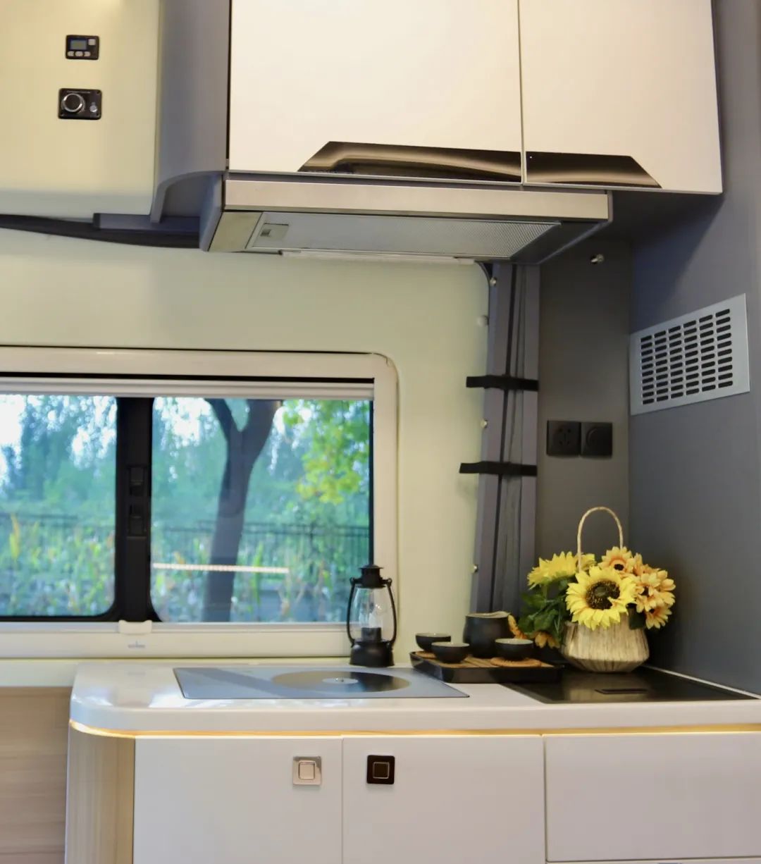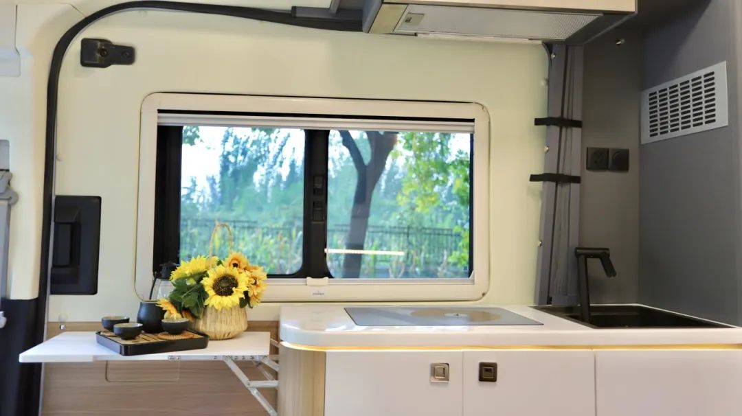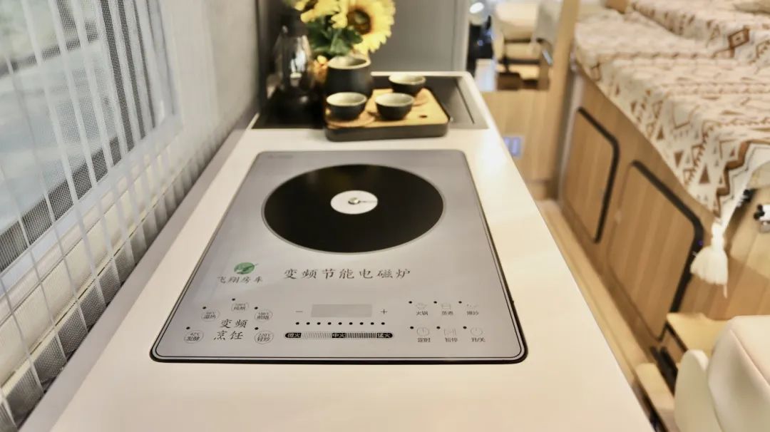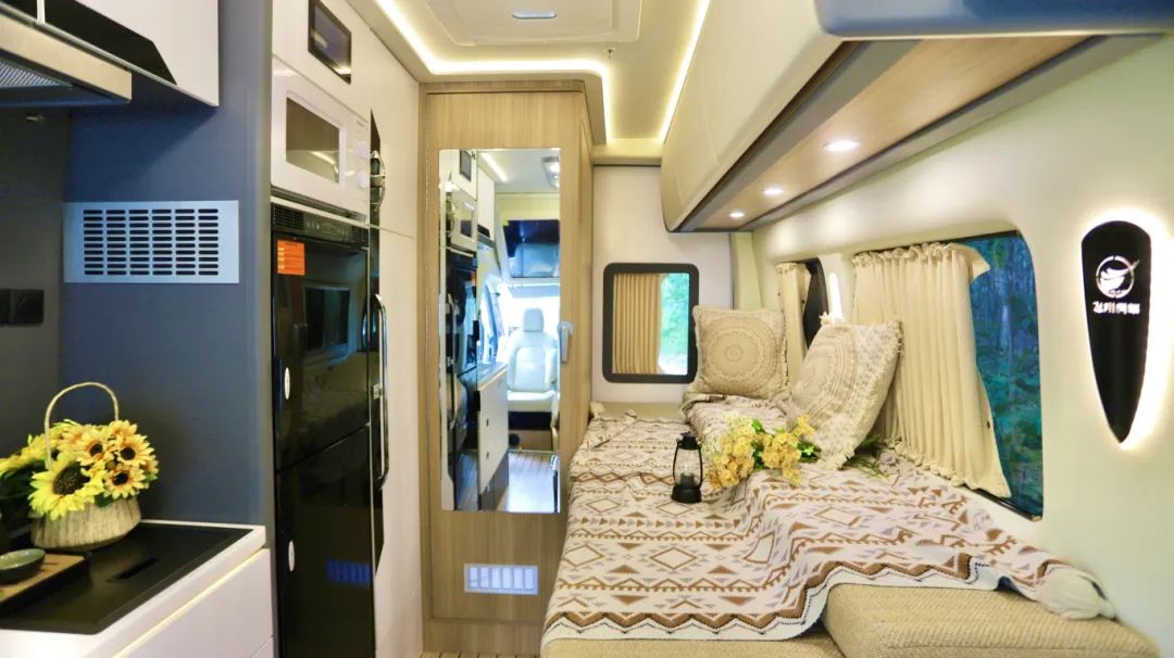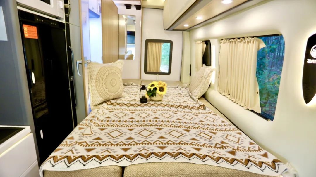 现在市场上房车种类繁多,内卷严重,卷颜值、卷价格、卷品质,卷配置,不同的设计师设计出不同功能布局的房车,让想买房车的朋友眼花缭乱。 如果您想选择能够满足生活非常舒适的房车,一定要满足相关的条件;比如说行车状态时拥有安全舒适的乘坐体验、驻车情况下拥有一个真正的厨房而非伪厨房、睡觉时有足够的空间,尤其对B型房车本就有限的空间而言,设计更加严苛,所以,如果您是想选一台真正的B型房车,而非商务车的话,这款“精典”当之无愧! 底盘采用福特T8打造,2.3T柴油发动机,采埃孚8AT自动挡变速箱,性能非常的优越,这个底盘为一个长轴高顶的底盘,所以本身的底盘基础保证了内部足够的空间,适合我们出去玩。 长度为5米99、宽度2米164、高度2米9,蓝牌C照就能驾驶,符合国六B的排放标准,那它的高度为2米9,相较于一般的C型房车通过性更好。 采用的原厂车身,更加安全可靠,白色的车身,中间是黑色的全景平推窗,即使在行车过程中也可以打开进行通风换气,当然了,如果您喜欢外推窗的话也支持选装,全凭您的喜好。 副驾驶一侧上方是户外遮阳棚,下方就是户外厨房的位置,桌板也是另有玄机。 上方锁扣打开,下方锁扣按住之后,可以变成一个1米4的超大操作平台,里面可以拿出便携式柴油炉,防强风的设计,拥有5000w的高火力值,我们在这做完菜之后还可以在这里就餐。 后门处舱门打开里面安装了一台洗衣机,快拆式设计,不需要的时候将洗衣机放在家里,这个位置就变成储物空间了,不知道这个设计大家还喜欢吗? 床的下方就是储物,能做到床有多大,下方的储物空间就有多大,日常的行李物品都能放下,还是贯通式的设计,里外都有舱门,下雨天在车内也能进行拿取。 进入车内,可以感受非常的温馨舒适,这款车采用福特T8的底盘,采埃孚8AT的变速箱,驾乘性和操控性也大大提升了。 除了在外面有一个抽拉灶台之外,在室内还有一个厨房,采用的为变频式电磁炉,相较于常见的电磁炉而言,内部安装了温度传感器,变频电磁炉的温度变化更加均匀,做饭的时候更加方便,不会出现受热不均匀容易糊锅的情况,上方为抽油烟机,做饭的时候不用担心油烟了。 厨房的位置储物空间也非常丰富,上方是储物吊柜,下方是储物抽屉,油盐酱醋茶都能放下。 旁边就是150L双开门冰箱,独立控制温度,各种食物都可以放下,还有微波炉可以加热食物,做一些速食。 B型房车里面有这么大的衣柜,女士应该是非常喜欢的,日常的外套连衣裙都可以放在里面。 在后方就是本车的卫生间,可以说这是B型房车里最大的卫生间了,比日常的B型房车卫生间又加宽了14公分,容纳2个人都是非常轻松的。 顶部为雨感换气天窗,下方为吸塑一体的洗手池,就连肥皂盒都准备好了,下方为抽拉马桶,车上24小时有热水,随时可以洗热水澡。 虽然本车是纵床布局,但是内部却有一张1米3的大床,您是不是感觉小编在夸张!? 借助卫生间的区域,床板可以进行拓展,从单人床,可以秒变一张双人床,弥补了B型房车纵床只能睡一个人的遗憾,床头设置了阅读灯以及取电口,在床上也更加方便。 上方的吊柜进行了新升级,重新进行包覆,材质同升层系列一样,摸起来更舒服,但是这也不仅仅是一个吊柜,除了储存衣物被褥之外,在紧急时刻,还可以变成一张单人床,这样一上一下就是子母床,满足三人的睡卧需求。 两张床还不是飞翔的极限,就在前方驾驶舱的上方,还有一张吊床,经过升级之后,可以发现会客厅的垂直高度变得更大,更加优越。并且前方的电视尺寸变得更大了,足足有50寸,这个视觉冲击更强大。 需要使用吊床的时候,通过电动加手动的形式,就可以得到一张1米3乘2米的双人大床了,几乎可以实现坐直,这样极限状态下就可以实现5人的同时休息;平时隐藏在驾驶舱的上方也不占用空间。 驾驶舱的主副驾都可以实现180度的旋转,和后方的座椅实现四人对坐的情况,在这台车上,桌子采用了为升层系列同款桌子,既可以喝茶,还可以就餐娱乐。 本车配备的还是48V电路系统、5000w逆变器、200AH十度电、600w太阳能板;200L清水以及75L灰水。 优越的底盘加出色的上装成就非凡的房车,这样的“精典”您还喜欢吗?